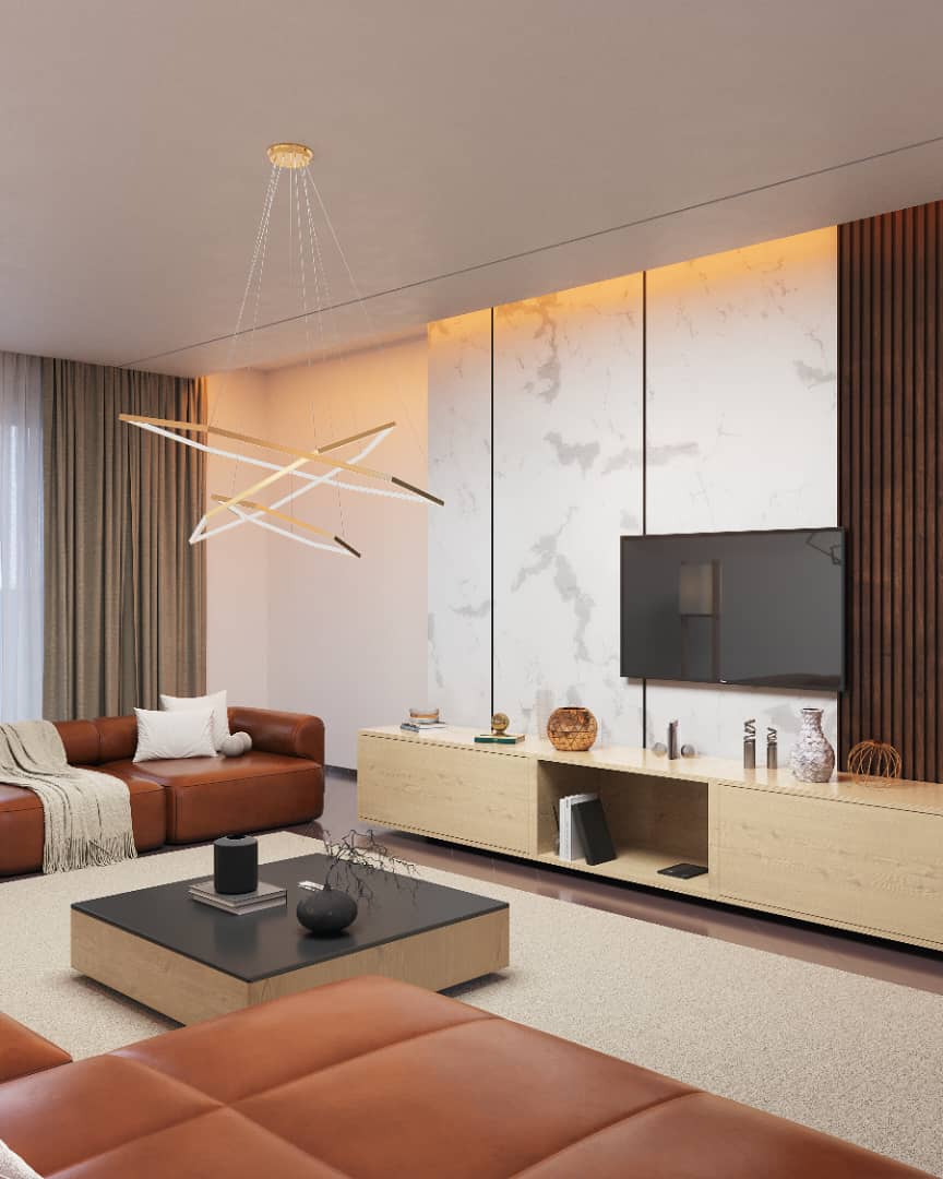 - Double-volume living area with 6.2 m (20 ft) ceiling height for dramatic openness
